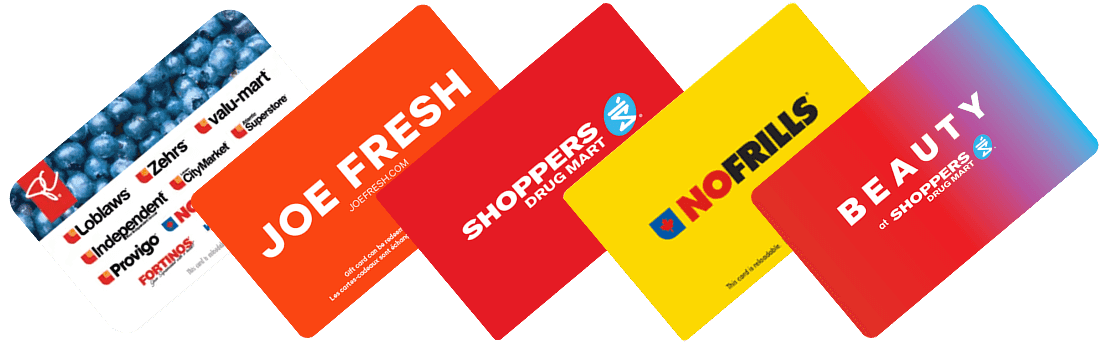 For President’s Choice®, Joe Fresh™, Shoppers Drug Mart™, or Beauty Boutique™ gift cards.