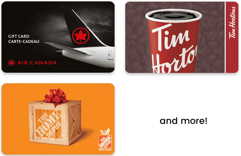 Get up to 30 PC Optimum points per dollar when you buy gift cards with a PC Financial® Mastercard® or 10 PC Optimum points per dollar when using your PC Money™ Account.